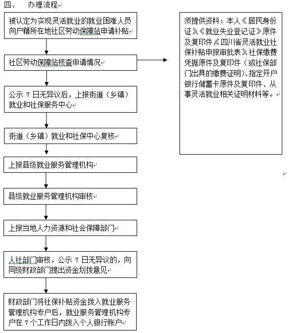 受理通過靈活就業(yè)方式實現(xiàn)就業(yè)的就業(yè)困難人員申報社保補(bǔ)貼資料,審核、撥付靈活就業(yè)社保補(bǔ)貼。